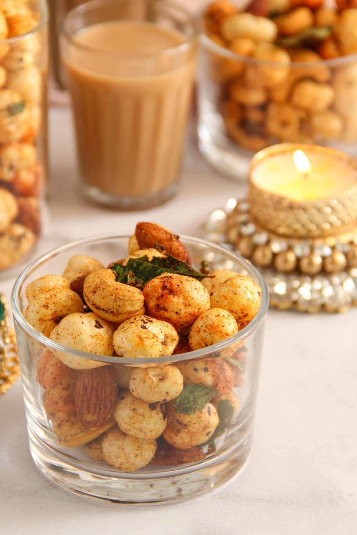 Makhana Chivda is my go-to chai-time snack! It is light, crispy, and perfectly spiced with gentle heat and warm, toasty notes. Made with roasted makhana (fox nuts/lotus seeds) and a handful of pantry spices, this Indian trail mix delivers that addictive, airy crunch without feeling heavy. It comes together in minutes on the stovetop or in the air fryer, and it's naturally gluten-free and vegan, making it a crowd-pleaser for everyday snacking, lunchboxes, and festive get-togethers!