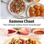 If there's one Indian street food I can never resist, it's Samosa Chaat - a restaurant-style, crowd-pleasing chaat you can easily make at home. Think flaky, golden samosas topped with spicy chana (chole), cooling sweet yogurt, zesty chutneys, plus crunchy onions and sev. This easy samosa chaat recipe delivers the perfect balance of spicy, tangy, sweet, and creamy flavors using simple pantry ingredients and samosas.